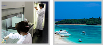 みどりむしは、成長過程でのCO2(二酸化炭素)の吸収率が、植物の中でも上位だと言われています。地球温暖化対策にも役立つことから、世界中で、長年に及ぶ培養の研究が重ねられてきました。しかし、栄養価が高く、多種の生物の捕食となるため、アメリカの航空宇宙局(NASA)でも、大量培養に成功できませんでした。その大量培養に、2005年、世界で初めて東京大学を中心とした研究チームが成功。自然豊かな石垣島で大量培養されています。さらに、サプリメント素材等に活用できる乾燥微粉末の食品化にも成功しました。