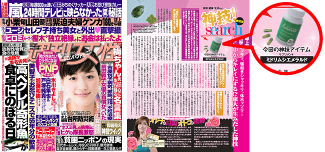 ミドリムシエメラルドトップ > ニュース&お知らせ > [2012年08月30日]「週刊女性」にミドリムシエメラルドが掲載されました。